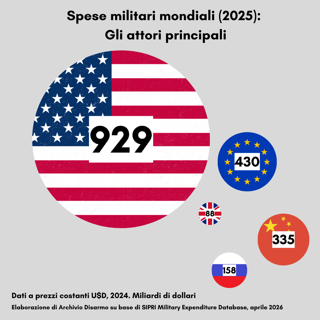 27 aprile 2026 - I PAESI DELL'UNIONE EUROPEA AL SECONDO POSTO NEL MONDO PER LA SPESA MILITARE. I nuovi dati SIPRI sui bilanci della Difesa nel mondo