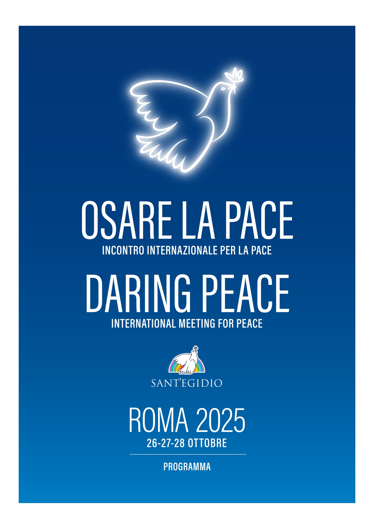 L’Incontro Internazionale per la Pace, organizzato dalla Comunità di Sant’Egidio, riunirà rappresentanti delle grandi religioni, della cultura, della società civile e della politica per affrontare le sfide più urgenti del nostro tempo: la convivenza pacifica, la solidarietà e la costruzione di nuove visioni di pace.