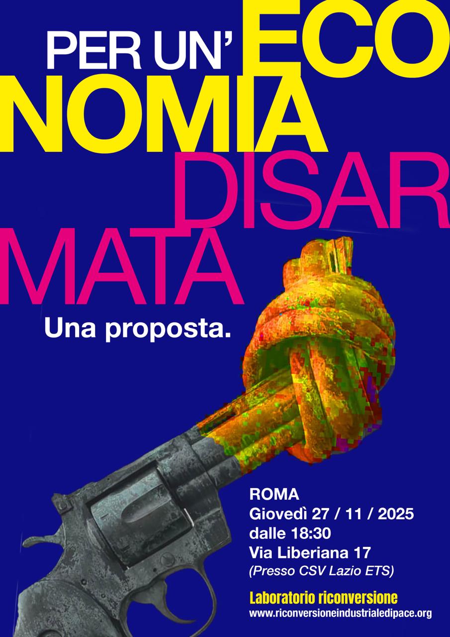 Una rete sociale il cui obiettivo è quello di affrontare, a partire da Roma e dalla sua provincia, il tema dell’economia di guerra partendo dalla conoscenza del tessuto produttivo interessato e dei centri di pensiero che lo alimentano, per poter definire una proposta collettiva e condivisa capace di indicare una strada diversa e smontare dalle radici la logica di guerra che muove l’intero complesso militare-industriale e finanziario.