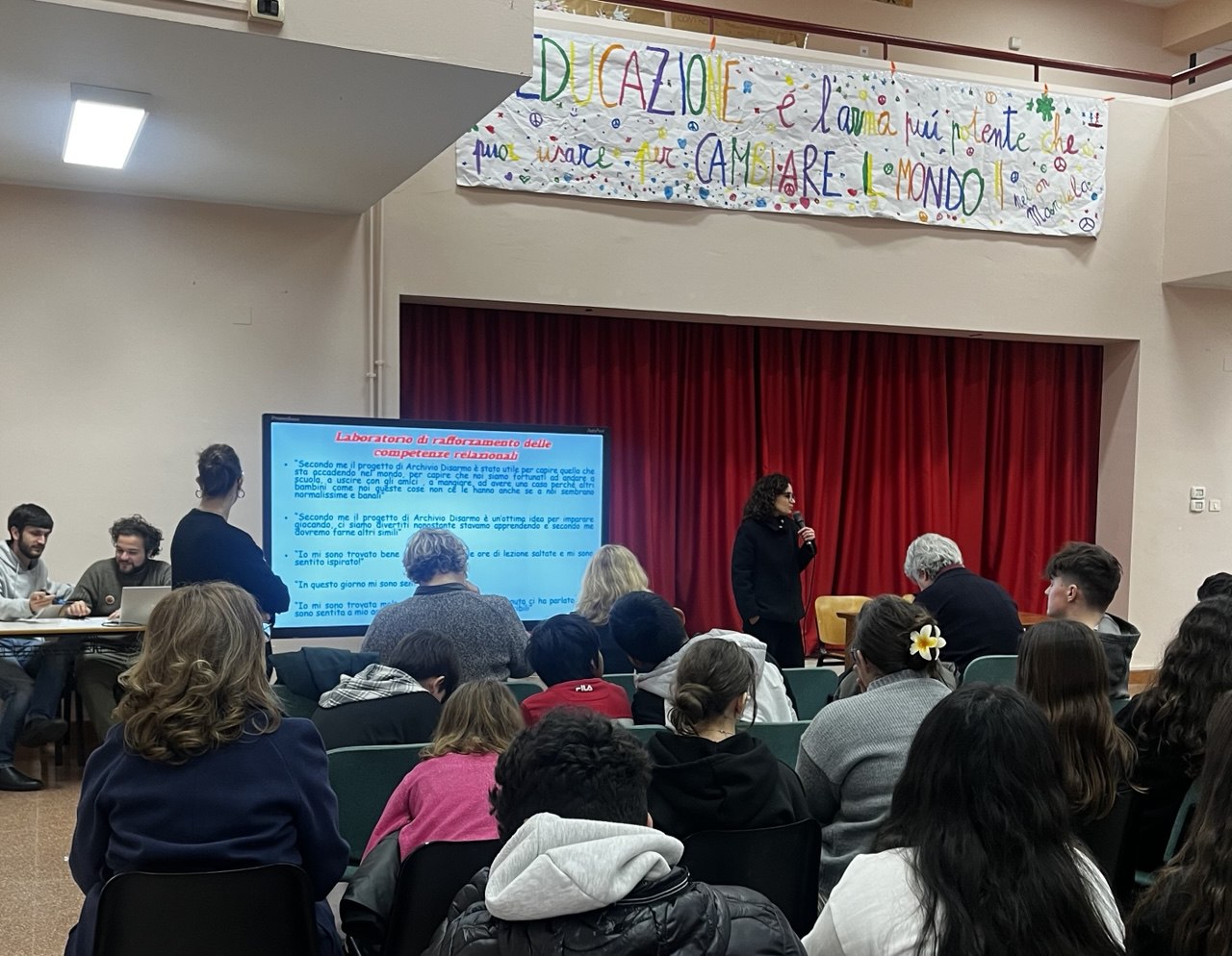Ad aprire l’incontro sono stati i saluti istituzionali della Dirigente Scolastica dell’istituto Comprensivo Antonio Gramsci, dott.ssa Laura Fioretti, seguiti dalla presentazione del progetto a cura dell’Archivio Disarmo, capofila del progetto.