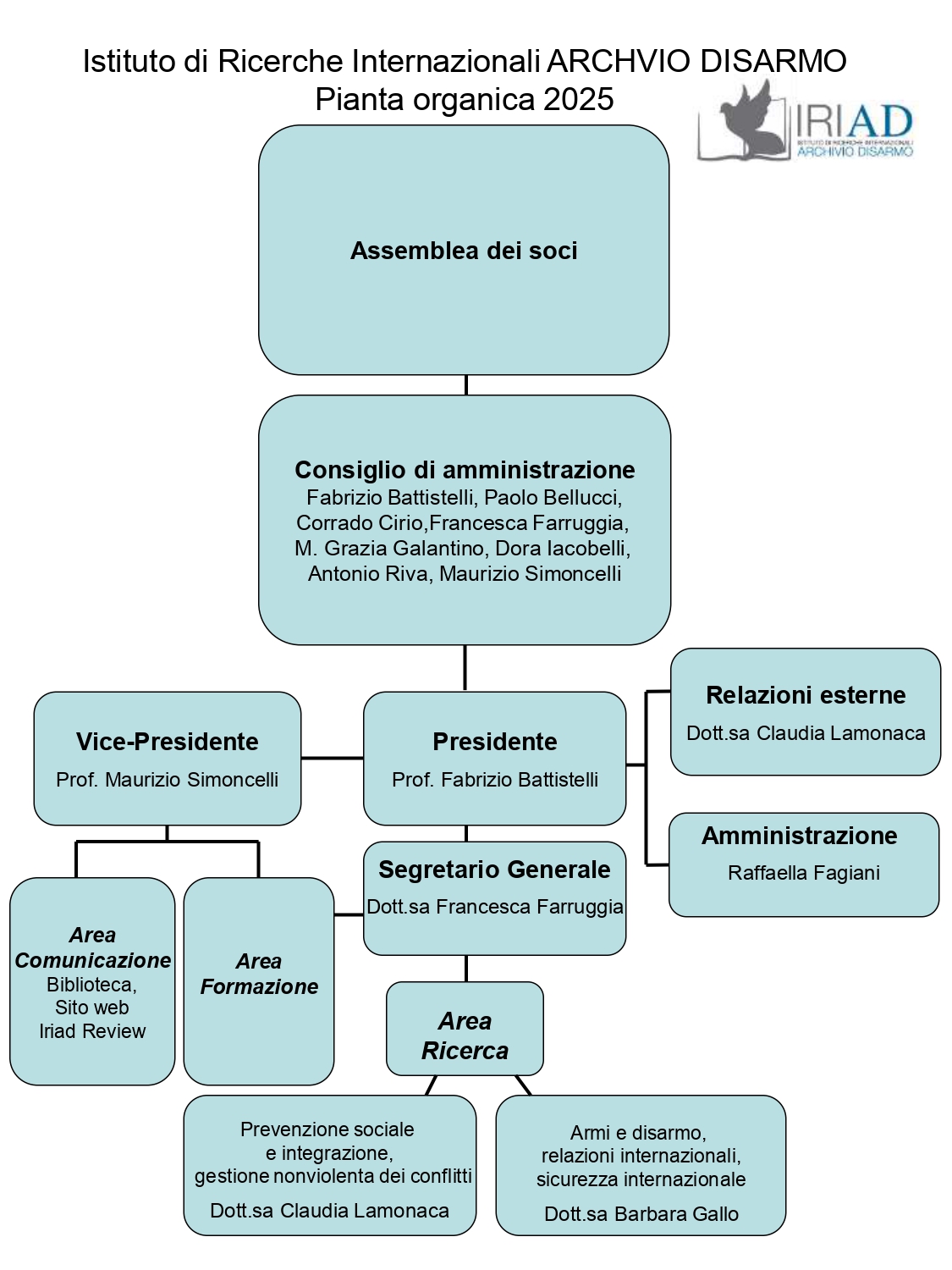 - Il Presidente e il legale rappresentante dell'IRIAD è il Prof. Fabrizio Battistelli;